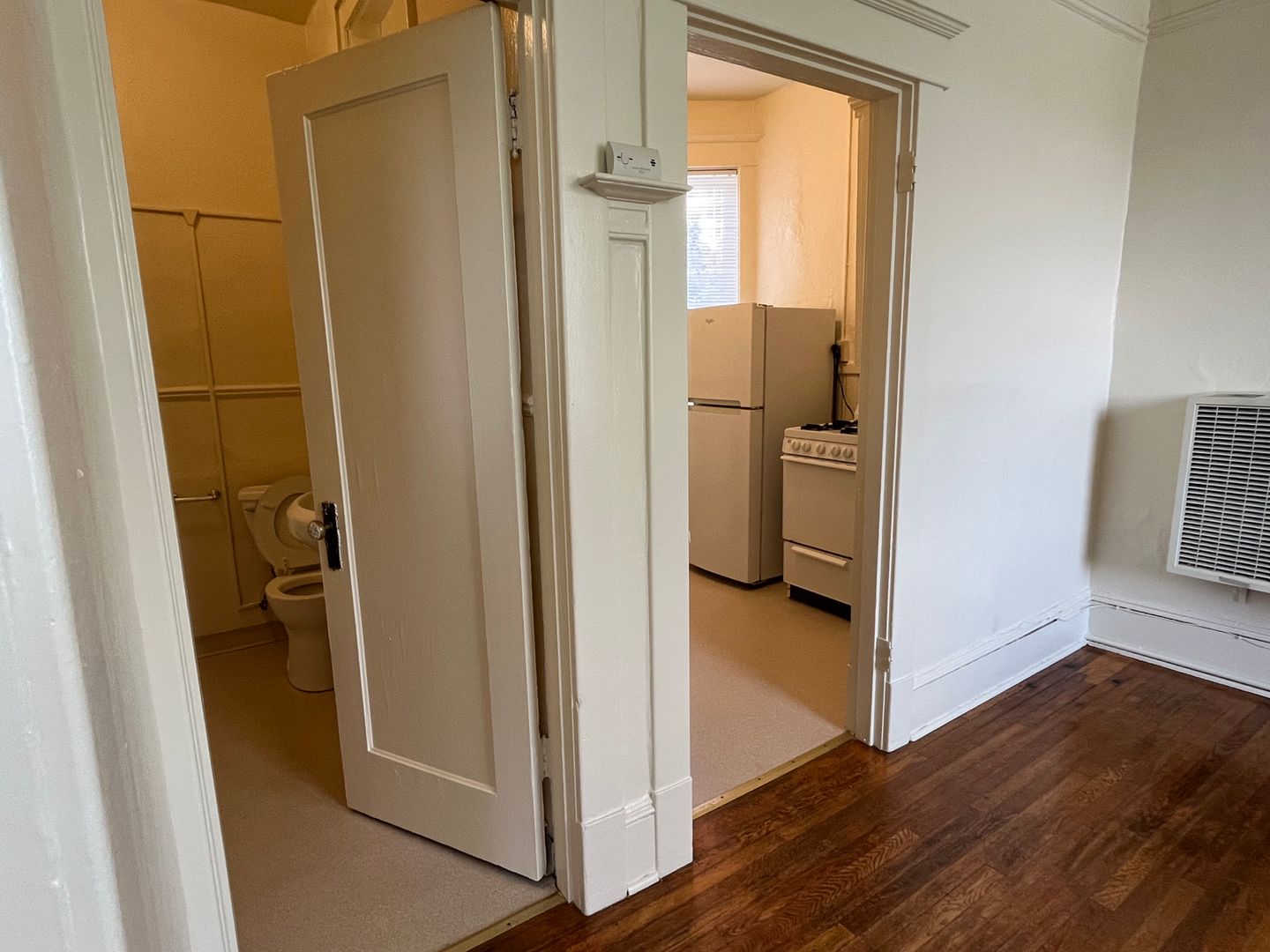 Double studios feature two main rooms separated by a pocket door, with a layout that makes them not quite, but almost, one bedrooms.