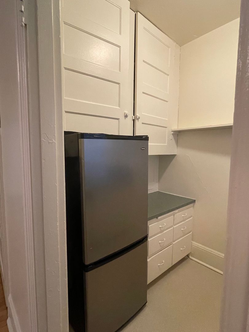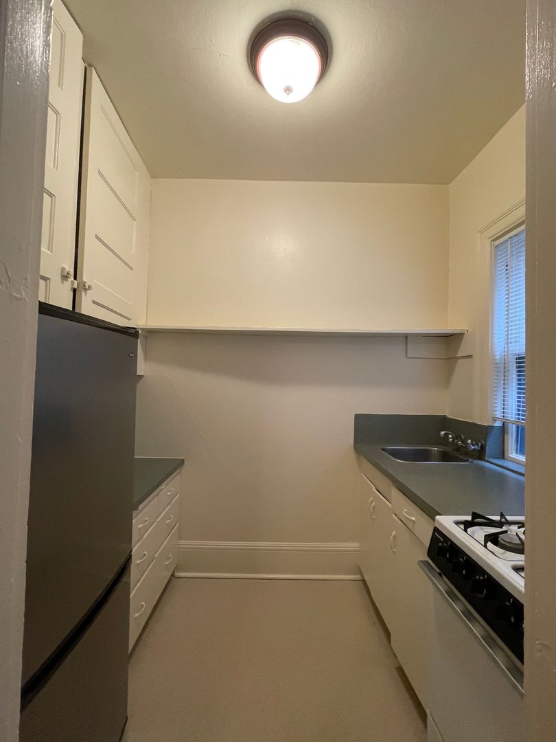 This studio boasts two large closets, a new gas range, and a cozy feel.